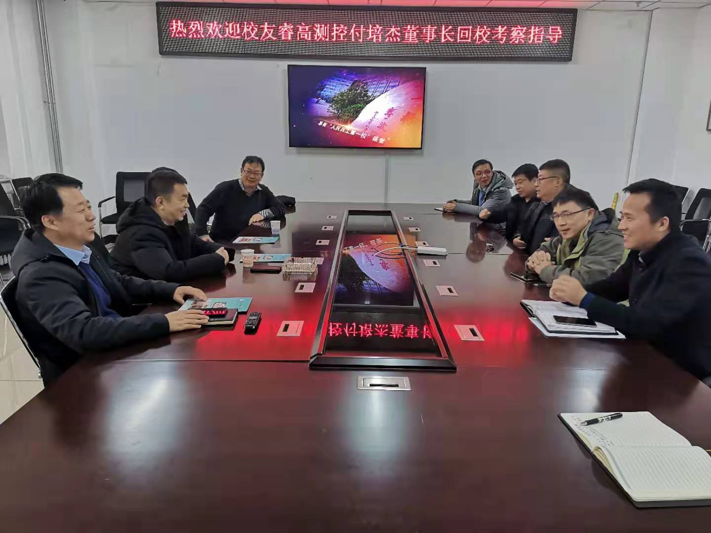 下午,付董事长拜见了班主任苏铁熊副校长,还与协同创新融合院院长李强教授进行了技术交流,了解到彼此合作的切入点,并接受了学生记者的采访,表达了回馈母校发展的美好心愿。