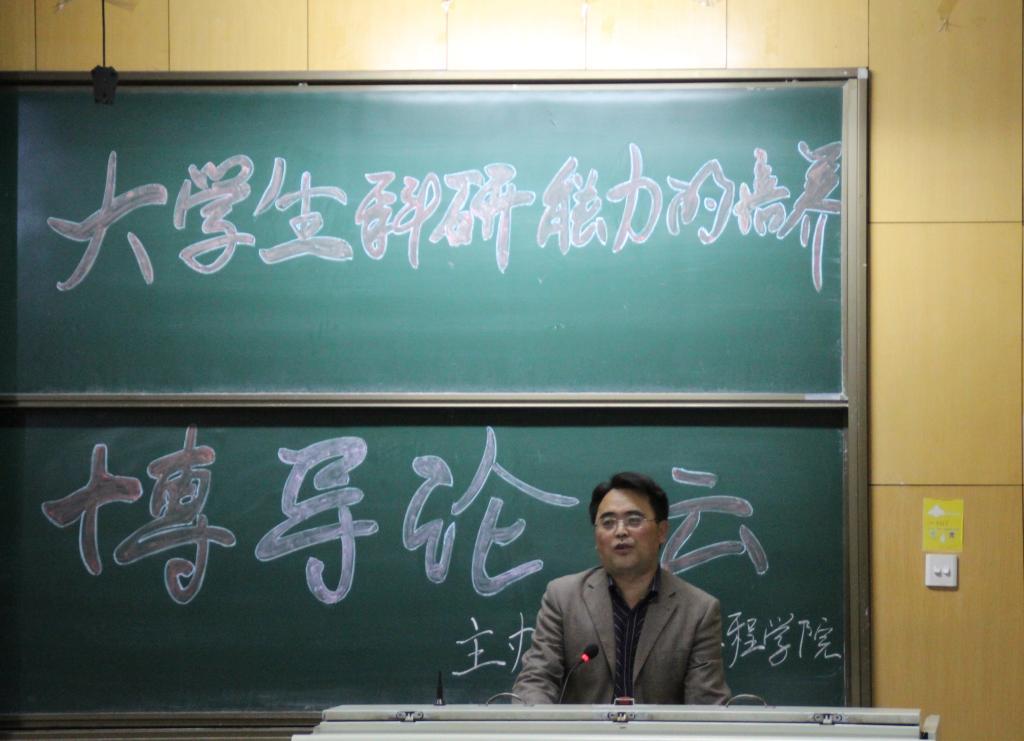 晚7时许,在同学们热烈的掌声中,尹建平教授登上讲台,开始此次博导论坛会的演讲。他首先提出学生要积极参加各种科研创新的比赛项目,并且详细地介绍这几个项目。在谈到数学建模大赛时,他仔细的为同学们讲述了数学建模的参赛条件和我校在这个比赛项目中取得的优异的成绩,并详细的解答了一位同学提出的关于数学建模方面的问题。随后,他又仔细介绍了电子设计大赛的一下事项以及近几年比赛的变化和我校在此项目上取得的成绩。接下来,尹教授和同学们的通过互问互答的形式使同学们对于自己专业的问题有了更具体的了解。在师生其乐融融的氛围中,时间不知不觉地过去了,论坛会也接近了尾声。在同学们的鼓掌声中,此次论坛会宣布圆满结束。