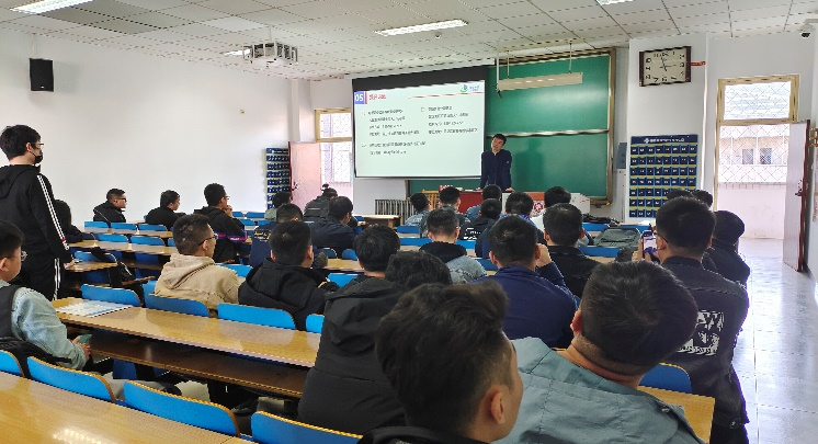 陈少辉主任通过一重集团专项装备研究所的招聘宣传视频对研究所的发展历史、招聘岗位、工作内容、工资待遇以及入职员工的职业发展规划进行了详细的介绍,对应聘的同学表示热烈欢迎。随后,陈主任对专项装备研究所的科研项目、科研项目管理、科研激励政策做了详细的介绍,宣讲结束后,陈主任与符合应聘条件的同学进行了初步的交流。