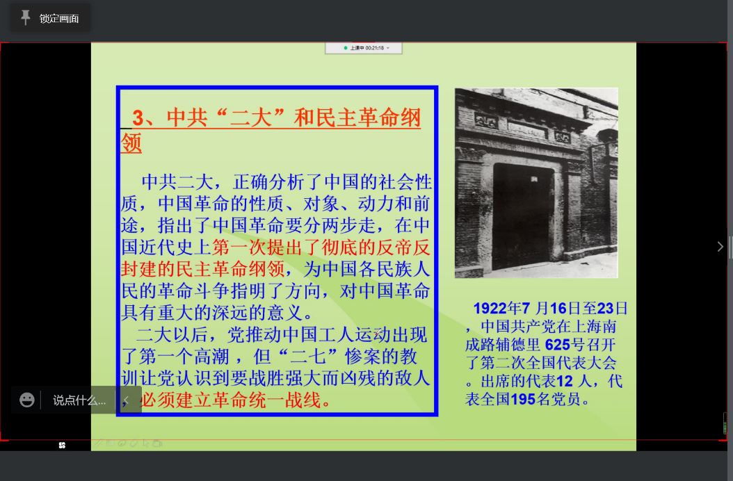 党委书记王琳老师讲授。王琳老师讲授的内容是关于我国的两会精神,老师提到2021年是我党建党100周年这个光辉伟大的特殊时刻,从脱贫攻坚扛起民生大旗到环境整改的大局观,从举国抗疫的齐心协力到经济复苏的世界奇迹,从清廉简政的不忘初心到十五年规划的雄心壮志。处处彰显着我们党是真正专心为人民,不断的想要给老百姓带来更好的生活。会议期间,老师还和同学们互动进行了交流。使大家更加明白了我们作为青年,应该主动承担时代的重任,先人一步,理解透彻两会传达的精神内涵,一同团结人民,努力的把国家建设的更加美好。