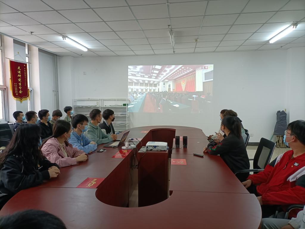 2022年5月10日上午,为进一步坚定理想信念,树立共产主义远大理想和中国特色社会主义共同理想,院团委书记李晶晶、辅导员老师邢培岩与全体学生干部在科学楼312会议室一同收看直播,观看了习近平总书记在共青团成立100周年的讲话,各团支部通过不同形式组织收看,积极学习领会习近平总书记重要讲话精神。