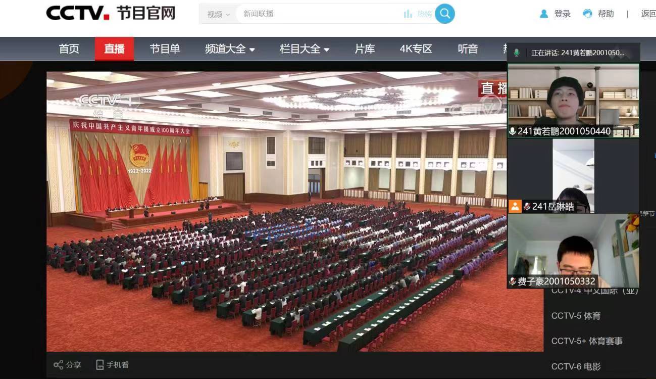 AG娱乐城 组织师生积极收看庆祝共青团成立100周年大会