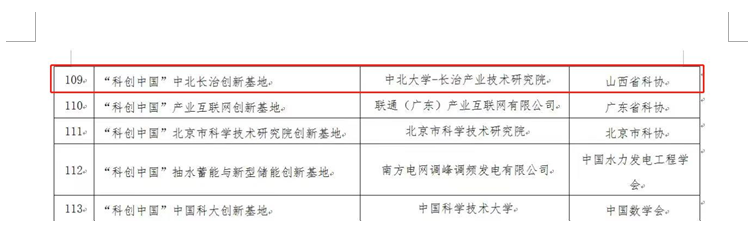 8月1日,中国科学技术协会(简称“中国科协”)网站公布了2022年首批“科创中国”创新基地认定结果,共194个“科创中国”创新基地入选。依托中北大学-长治产业技术研究院建设的“科创中国”中北长治创新基地入选“科创中国”创新基地(产学研协作类)拟认定名单。