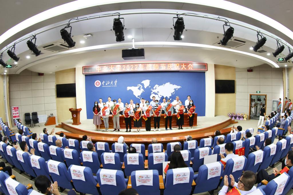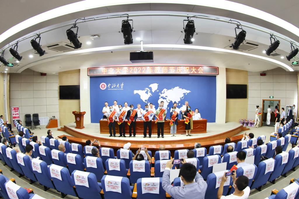 校党委书记沈兴全在讲话中首先向受到表彰的先进集体和优秀个人表示热烈祝贺,向刚刚加入教师队伍的新同志表示诚挚欢迎,向广大老教师们致以节日的问候。他指出,近年来,在全校师生共同努力下,学校在创建“双一流”大学的发展道路上越走越宽、越走越快,各项事业迈入高质量发展新阶段:我们始终坚持党管人才,深入实施人才强校工程,人才队伍建设不断取得新突破;始终坚持立德树人,深化三全育人综合改革,创新型人才培养不断取得新突破;始终坚持创新引领,聚焦转型奋力攻关,科学研究不断取得新突破;始终坚持聚焦成果转化,全面增强服务能力,服务我省转型发展不断取得新突破;始终坚持聚焦民生福祉,解决群众“急难愁盼”,满足更高需求的师生期待取得新突破。