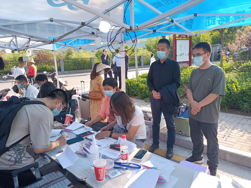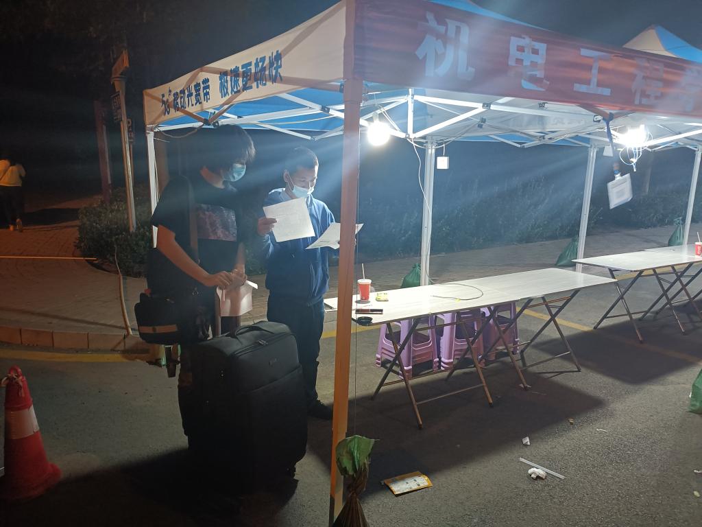 在校门口设立了“便捷通道”,在辅导员老师的引导下,学生依次经过测温、验码、核酸、领取进校单等环节后有序进入校园。早上6点多,随着返校学生进入校园,校园顿时热闹起来。为了接待到晚上最后一名学生返校,辅导员邢培岩老师、王永文老师到晚上23点多才离开工作接待点。