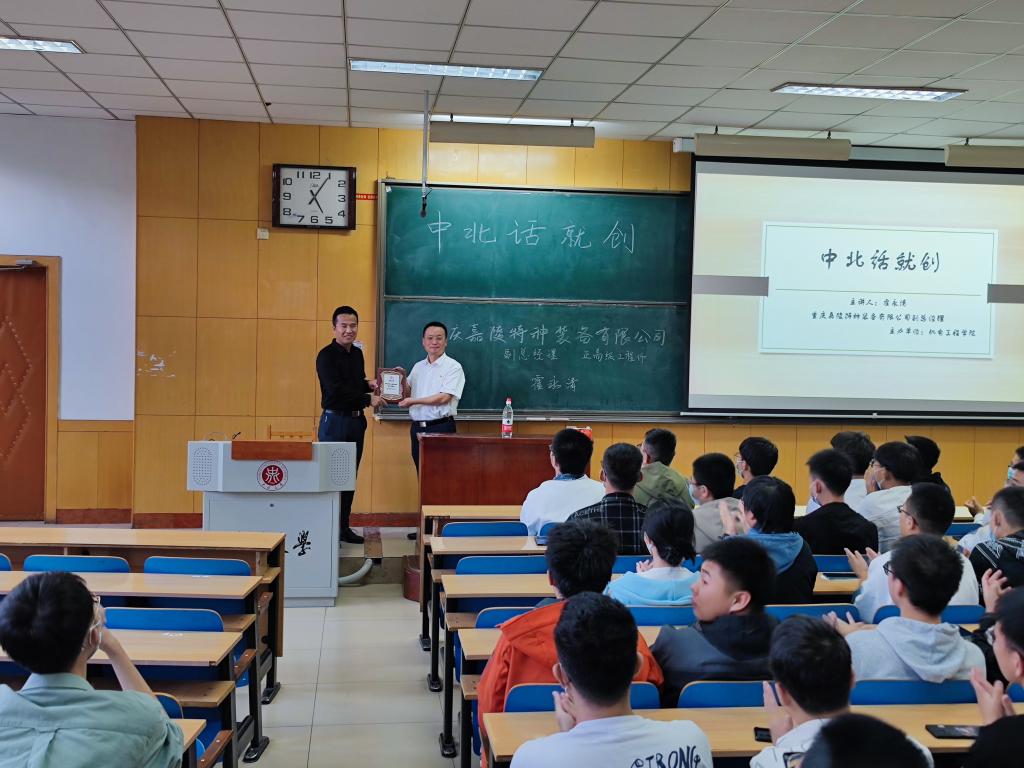本次讲座还举行了“特聘讲师”聘任仪式,刘书记为霍永清校友颁发了中北大学“职业发展与就业创业校友讲师团特聘讲师”聘书。