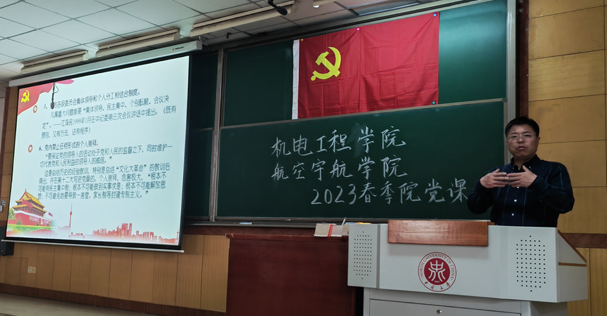 第七讲主题是“党的性质”,由离退休工作部党委书记郭书杰老师讲授,郭书记从四个方面对党的性质和宗旨进行了全面的介绍,希望积分子增强为人民服务的意识、提升为人民服务的本领、践行为人民服务的宗旨,并加强政治理论学习,提高思想政治素养。