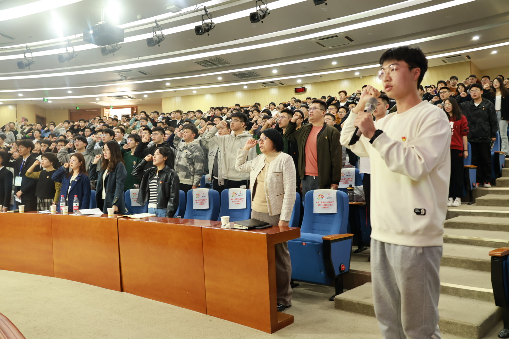 最后王胤超同志带领全体参会人员重温入党誓词,提醒大家不忘初心,牢记使命,做好先锋模范作用。通过此次党课的学习,强化了全体学生党员和主要学生干部爱院荣院意识,增强了同学们的集体荣誉感和凝聚力,全体学生党员和主要学生干部定努力奋斗,成为一名合格的新时代青年。