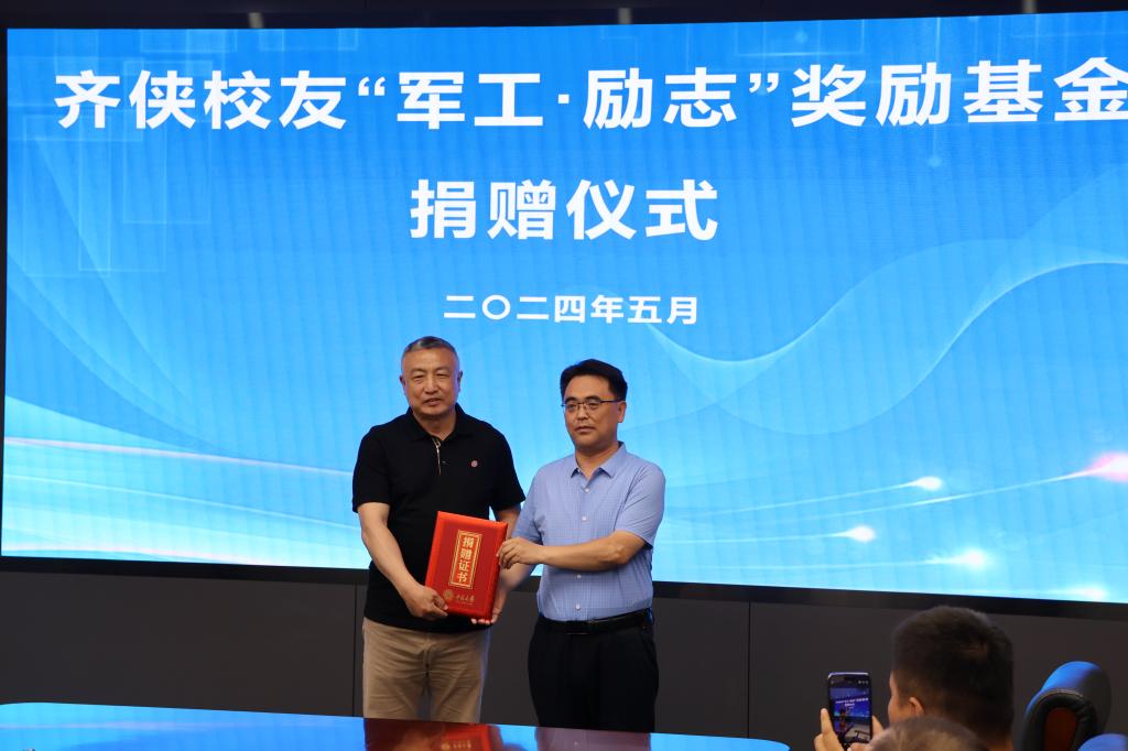 国内交流合作部部长刘国东向齐侠校友的善举表示感谢。他表示,这是一种大爱的体现,学校将把这笔资金管理好、使用好,真正用于有军工情怀的优秀教师和学生。同时,学校也将继续加强学生的教育引导,将军工情怀和感恩之心传承下去。
