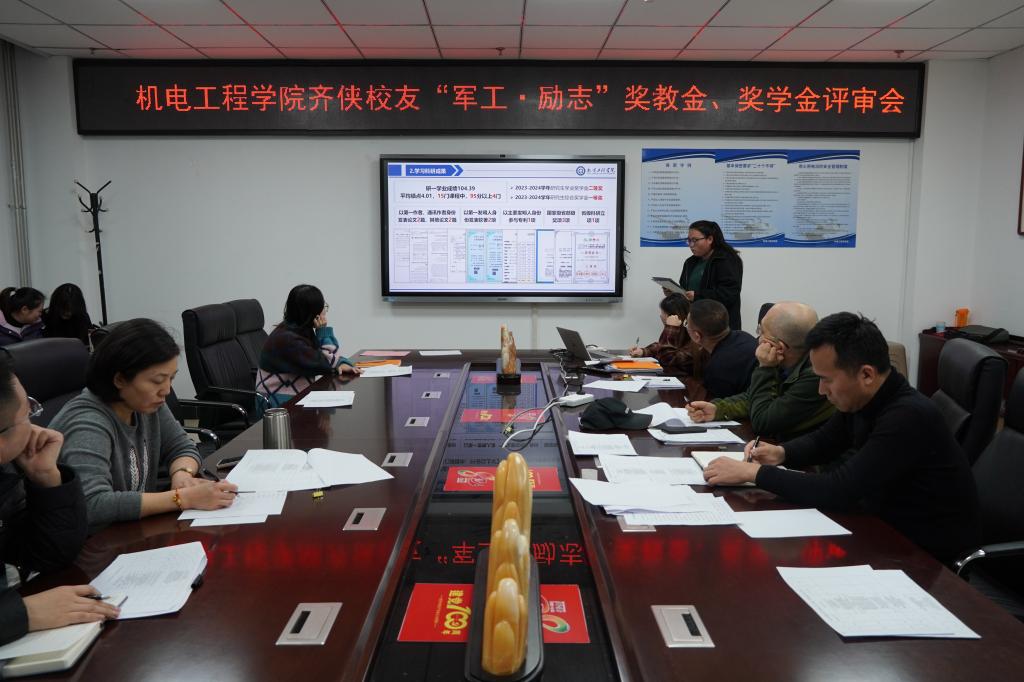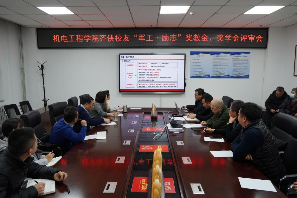 在科学楼A座圆满完成齐侠校友“军工·励志”奖励基金评定工作,“军工·励志”奖励基金分为三个模块:“军工·励志”奖教金、学业奖学金和科技创新奖学金。由院领导、各专业和各科室教师代表组成的评审小组,参与了此次评审会。
