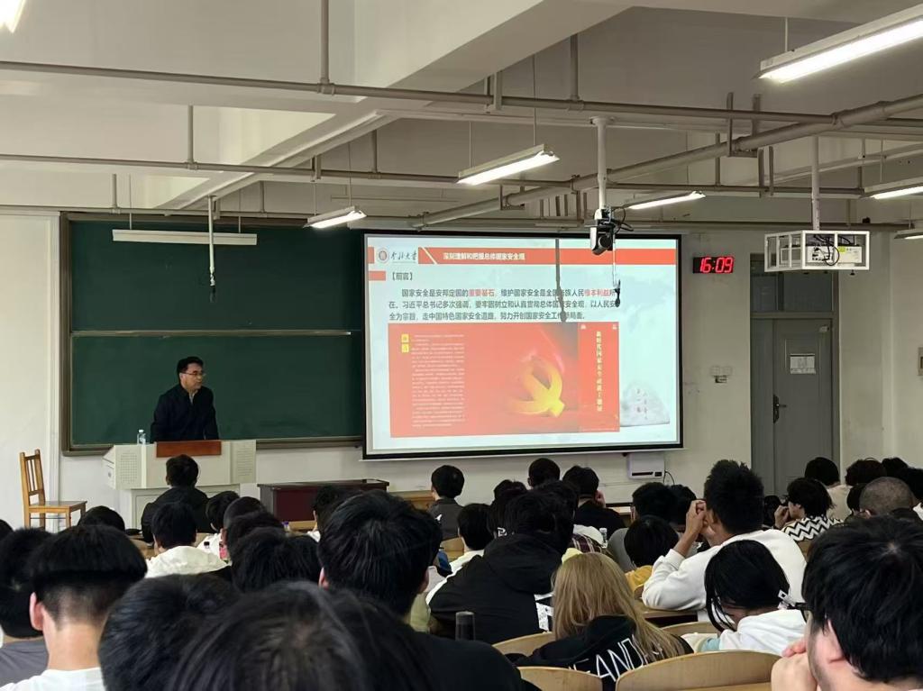 尹校长从历史与现实维度出发,系统阐释国家安全的战略意义,强调其涵盖政治、经济、文化、科技、粮食、边境、军事等领域。他以俄乌冲突中的信息战、伊朗将领被定点清除、中印边境冲突为例,警示“国家安全无小事”,任何领域疏忽都可能引发严重后果。针对意识形态安全,他展示西方反华势力借社交媒体、学术期刊渗透的案例,提醒学生警惕“历史虚无主义”,面对质疑英雄、抹黑发展成就的言行,须旗帜鲜明捍卫真相。