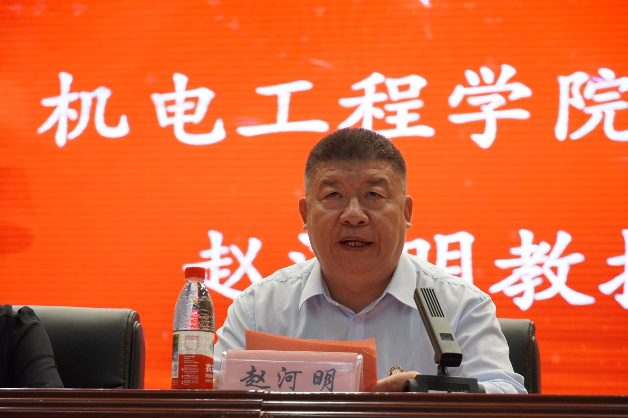 随后,院党委书记赵河明致辞。他首先对新生们表示热烈的欢迎和衷心的祝贺,随后提出四点希望与新生共勉:一是要砥砺忠诚品格;二是要锤炼过硬本领;三是要锻造军工作风;四是要涵养博大胸怀。要时时刻刻记住自己是机电人,是一名光荣的军工人。
