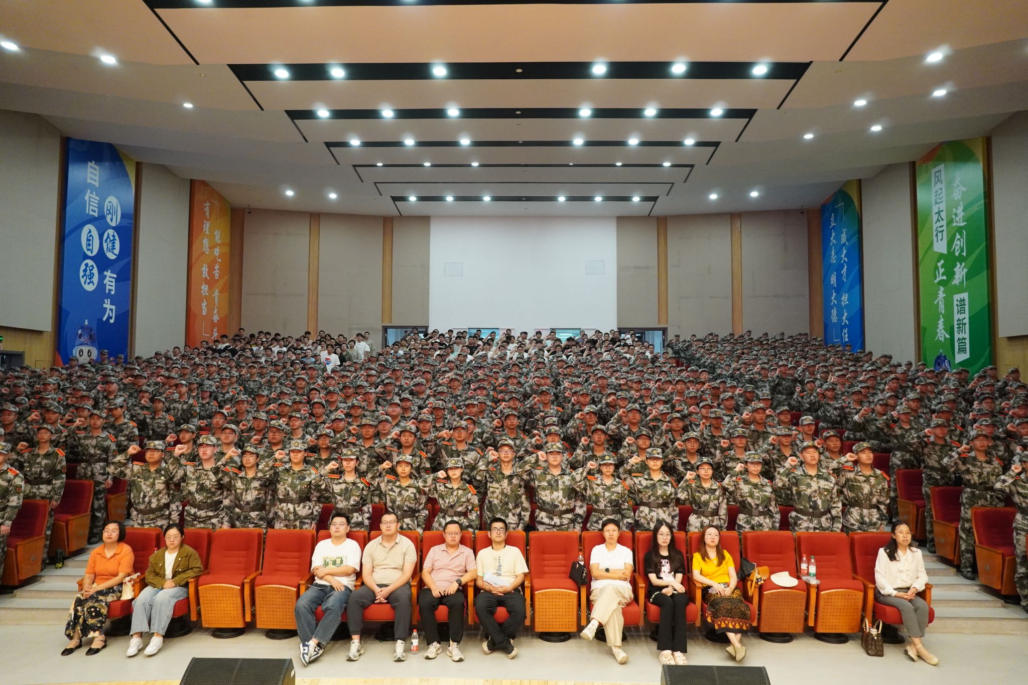 开学典礼在雄浑激昂的校歌中落下帷幕,我们共同祝愿2025级新生以梦想为帆,以奋斗为桨,在知识的殿堂中探索未知,在实践的熔炉里锤炼本领,书写属于自己的青春华章,期待你们带着满满的收获与成长,成为担当民族复兴大任的时代新人,让青春在强国建设的征程中绽放绚丽之花!