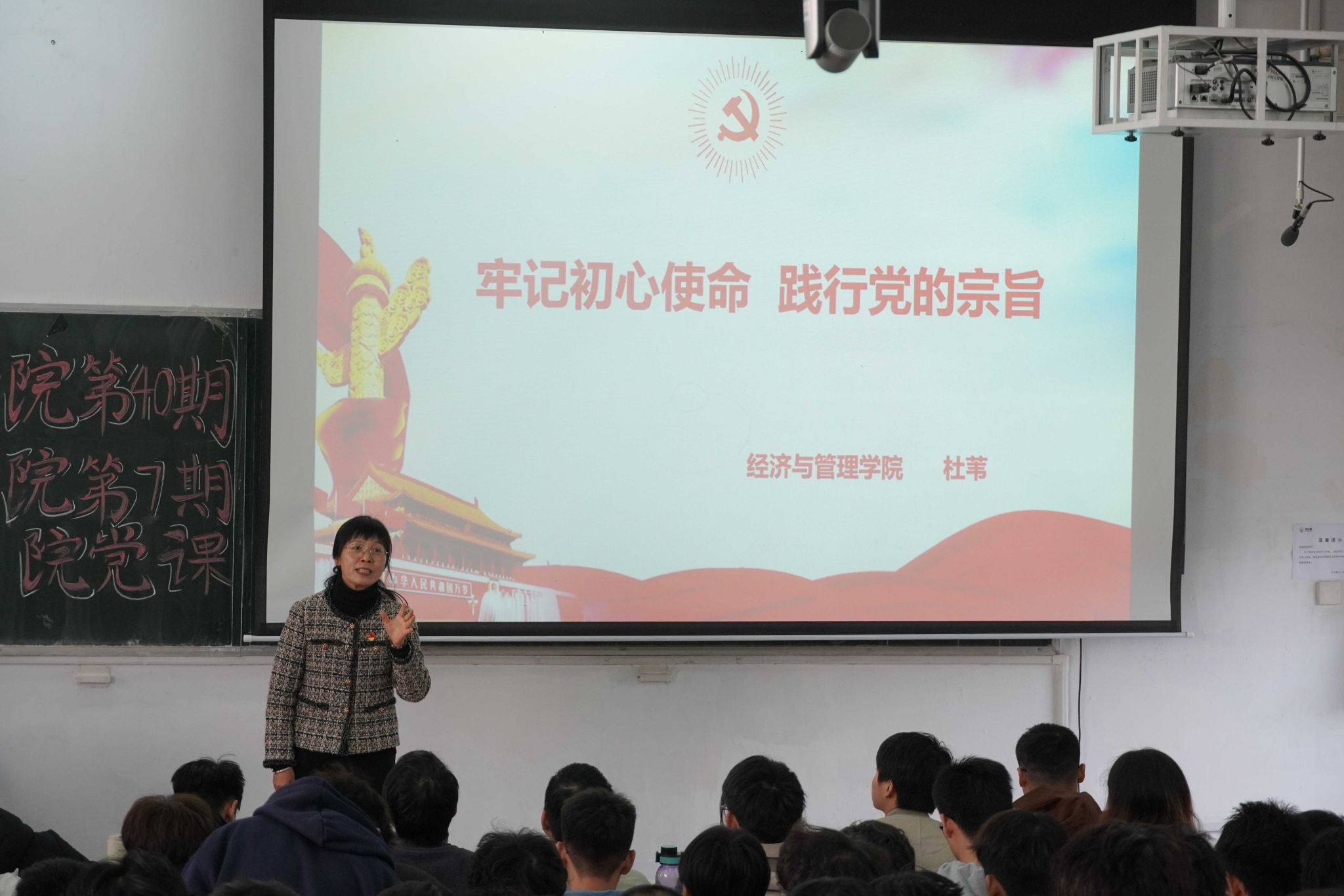 党委书记杜苇讲授《牢记初心使命,践行党的宗旨》。课堂上杜苇书记既溯源党的初心使命的理论根基,又以基层党建案例将“全心全意为人民服务”具象为可落地的行动指引,在授课中筑牢学员“以人民为中心”的思想底色,厘清“党员”二字的责任分量,教导学员们初心从不是抽象口号,而是藏在为他人解难题、办实事的日常细节里。
