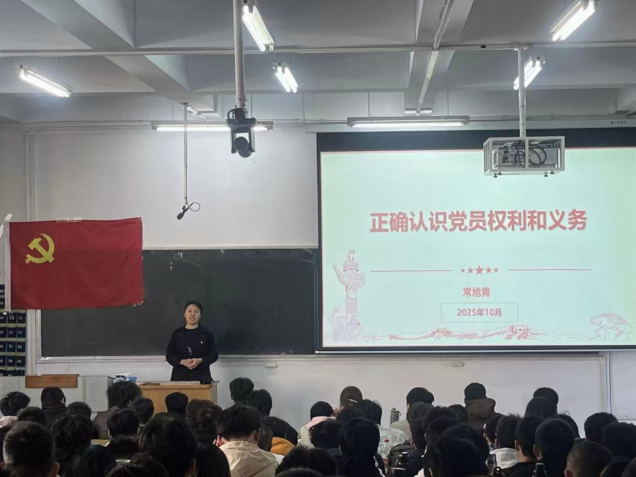 党委书记常旭青讲授《正确认识党员的权利和义务》。常旭青书记辩证解析党员权利与义务的关系,结合党章条文讲清“如何正确行权、主动履责”。这堂课帮学员跳出“权利义务对立”的认知误区,找准党员的身份定位,让学员们通透地明白党员的权利是“责任配套”,义务是“信仰实践”,二者始终统一对党的赤诚。