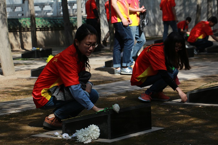 上午九时,扫墓活动正式开始。祭扫活动由夏安威同学主持。首先,老师和党团干部在庄严肃穆的太原解放纪念碑前向长眠于此的革命烈士敬献了花圈,同志们将小白花敬献在烈士纪念碑前并鞠躬,以默哀的形式寄托着对烈士的哀思;接着,院党建办公室主任李泽章同志带领全体同志进行入党宣誓,同志们热情高亢的宣誓激起了内心为共产主义奋斗终身的强烈愿望,革命烈士的历史壮举更是激发了他们的爱国热情;然后,大家来到烈士墓区,烈士陵园庄严肃穆,苍松翠柏环抱烈士陵墓,大家对烈士墓区进行了打扫和清洗,逐一擦拭了烈士们的墓碑;随后,大家怀着非常崇敬的心情,瞻仰了徐向前元帅纪念铜像、参观了解放太原战役纪念馆,听取了陵园工作人员对历史文字照片和实物的讲解,重温了解放战争时期革命先烈们浴血奋战、不怕牺牲的革命精神,深切缅怀了革命先烈的丰功伟绩。最后,王宇鹏书记对此次活动做了总结,他强调此次祭扫烈士墓活动旨在引导广大党团员在新的时期,缅怀革命先烈,重温红色岁月,学习先烈们不怕牺牲不畏艰险的革命斗争精神。并号召广大党团员要提高思想认识,坚定信念,认真学习革命烈士精神,不辜负烈士们的遗愿,踏着烈士们的足迹奋勇向前。