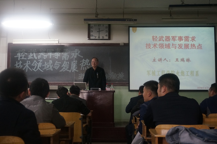 王教授从军事需求变化的历史进程入手,为大家介绍了现代战争的多样化需求以及非战争军事行动的需求;围绕轻武器所涉及的主要技术领域,分析了轻武器的关键技术,呈现了武器设计理论以及轻武器发射理论的新进展;结合多年来的教学与研究经历,从轻武器发展的几条主线,展望了世界轻武器发展的新动向及热点;讲座结尾,王瑞林教授对同学们的提问做了详细解答。整场讲座图文并茂、内容丰富,语言生动有趣,全体师生受益匪浅。
