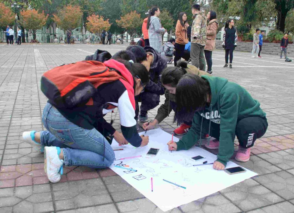 10月23日上午,由启菲源组织的团体心理辅导活动在体育场空地举行。本次活动由于晶老师携启菲源学生干部,带领2016级各班班团干部进行团体辅导活动,旨在增强各班班干部的领导力、班干部间的凝聚力,促进班级健康发展。