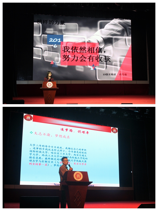 下午4时,报告会正式开始。本次报告会的主讲人包括高旭、肖雪萌、窦从浩、刘廷辉、王乐等5名优秀大学生代表。他们中既有全能达人、学术达人,又有竞赛达人。报告中,学长学姐们结合自己的大学经历,告诫大一新生要珍惜大学四年的宝贵时间,把学习放在第一位,在此基础上积极参加各项学科竞赛。社会活动,丰富大学生活,全面提升素养,找到适合自己的发展之路。其中,刘廷辉学长还强调了集体的力量,倡导大家服从班级管理,做一个自立、有责任心的大学生。