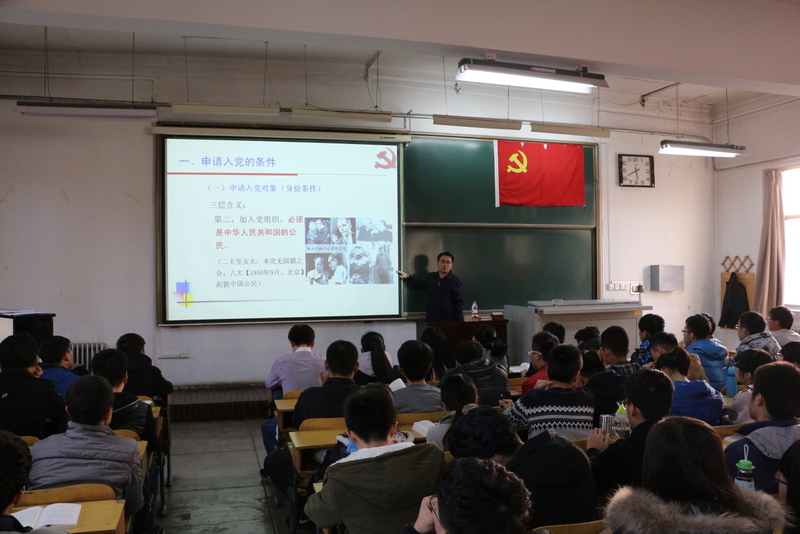 院长、党委书记、武装部部长尹建平老师以《党员的权利与义务》为题做第一讲专题培训。尹建平老师首先为大家列出了我国的党派组成概况、加入中国共产党的条件,并列举了尚宏等我校一系列杰出校友来激励大家奋发图强;之后,尹老师从党员的八项义务出发,并结合我国历代领导人的实例,详细阐述了党章规定的八项义务。告诫同学们务必要昂扬向上,积极为实现两个一百年目标和我校的“百年百强”梦贡献自己的力量;最后,尹老师希望大家认真学习、不断实践,争取早日入党。