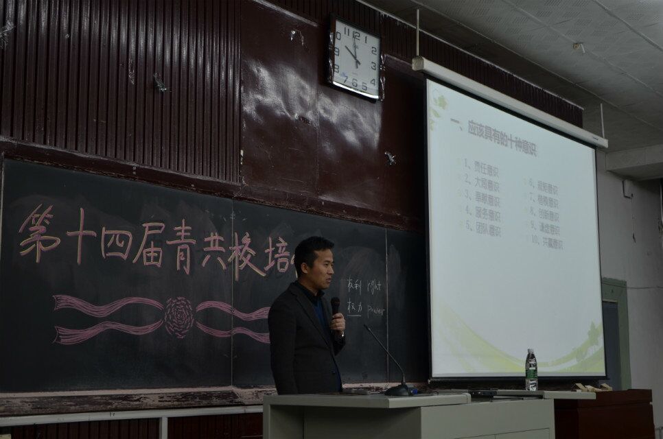 第二课由校团委宣传部部长刘玉巍部长为我们讲如何提升团支部的工作创新和效率。刘部长说,班级是最基本的单元,团支委是引领学生思想和反馈学生思想的团体组织,引导学生坚定的跟党走。最主要的还是基层团干的言传身教,准确把握学校的政策,随时学习习近平总书记的系列重要讲话,要监督同学们的思想,并带领同学的思想,起到一个上传下达的作用。团支书、组织委员、宣传委员小团队合作,分工明确,带领班委团队,让各团员发现自己的优点,带动优秀的人,建设有活力的团支部。并且学会分享手里的资源和信息,更好的服务同学,才能得到大家的认可。打铁还需自身硬,自己变得更好,组织的活动更好,锻炼了自己的能力,对自己也有好处。