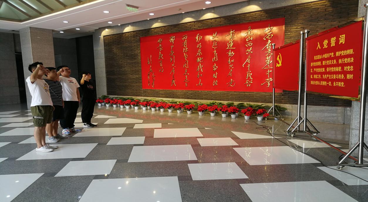 来到馆内,支部党员代表在纪念大厅中央鲜红的党旗下,代表支部全体党员庄严宣誓,誓言铿锵有力,党徽熠熠生辉,大家在浓烈的红色氛围中更加坚定了自己的入党初心。