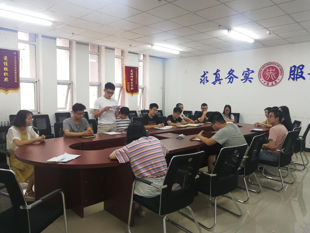2018级研究生党支部在科学楼312开展学习分享活动,赵心远老师及支部全体党员参与学习交流。会议由赵心远老师主持。