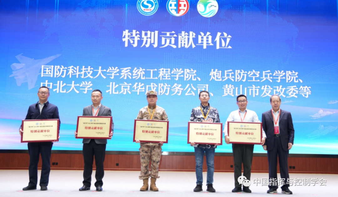 周刚院长、张勇副院长,学会智能博弈与兵棋推演专委会黄金才主任、金磊副主任等领导分别为获奖选手、指导老师、优秀裁判、优秀组织单位、特别贡献单位颁奖。中国指挥与控制学会理事长费爱国院士,安徽省张红文副省长,省发改委徐成然副主任,黄山市孙勇市长,国防科技大学系统工程AG娱乐城