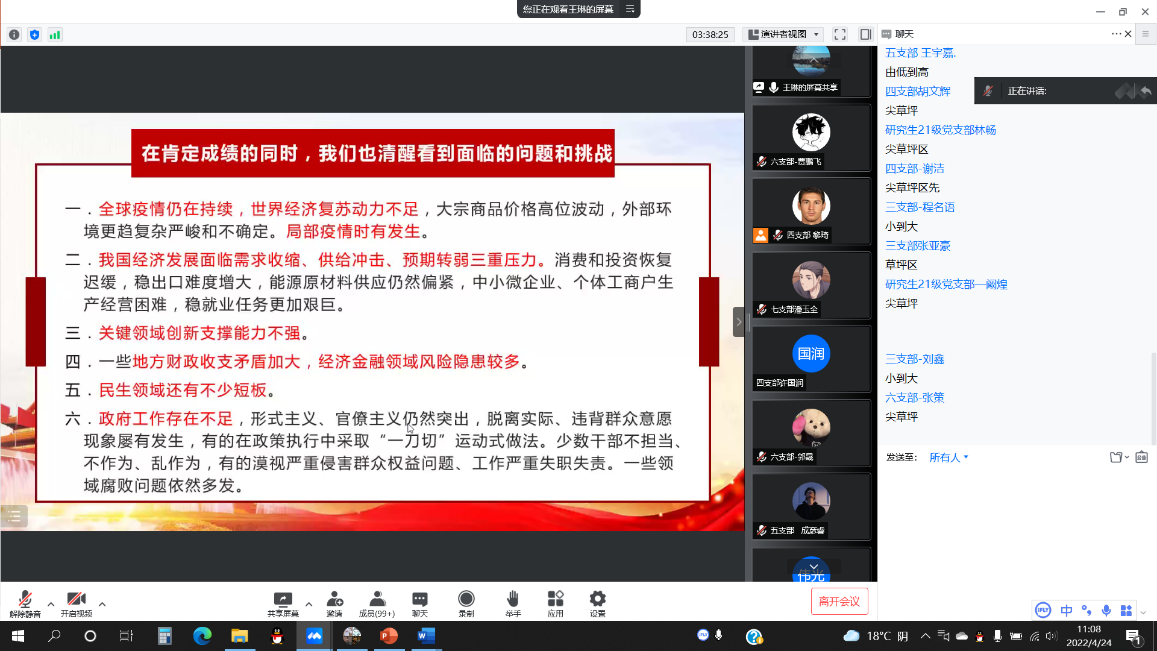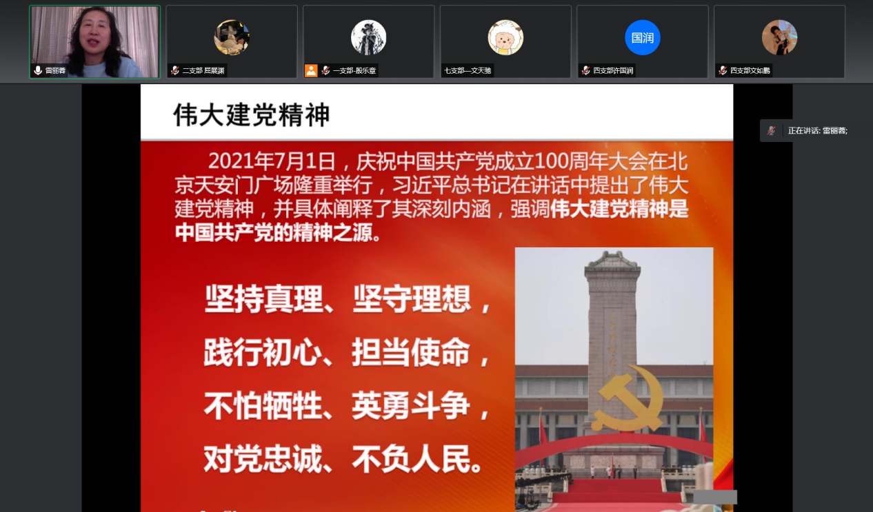 党委书记王琳老师讲授。王琳老师讲授的内容是关于我国的两会精神,老师提到2021年是我党建党100周年这个光辉伟大的特殊时刻,从脱贫攻坚扛起民生大旗到环境整改的大局观,从举国抗疫的齐心协力到经济复苏的世界奇迹,从清廉简政的不忘初心到十五年规划的雄心壮志。处处彰显着我们党是真正专心为人民,不断的想要给老百姓带来更好的生活。会议期间,老师还和同学们互动进行了交流。使大家更加明白了我们作为青年,应该主动承担时代的重任,先人一步,理解透彻两会传达的精神内涵,一同团结人民,努力的把国家建设的更加美好。