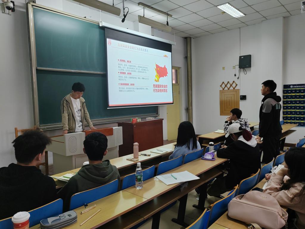 杨志剑同志带领大家以“国家安全,你我同行”为主题学习。首先,介绍了国家安全教育日,让大家了解国家安全包括那些内容。然后分析了当前国际国内形势,体现了国家安全问题是每个国家的永恒话题。讲解了危害国家安全的行为及相关罪名和危害国家安全罪相关法条内容,让同学朗读进行更深刻的学习。