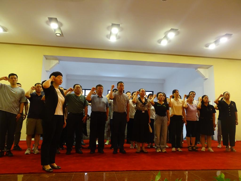 参观后,教职工党员在院党委书记赵永娟同志的带领下重温了入党誓词,注视着鲜艳的党旗,铿锵有力的誓词体现了党员们对党的忠诚与热爱,也让他们更加牢记入党时的初心和使命。在返程途中,党员同志们在沈剑老师的带领下合唱《没有共产党就没有新中国》和《再铸辉煌》。