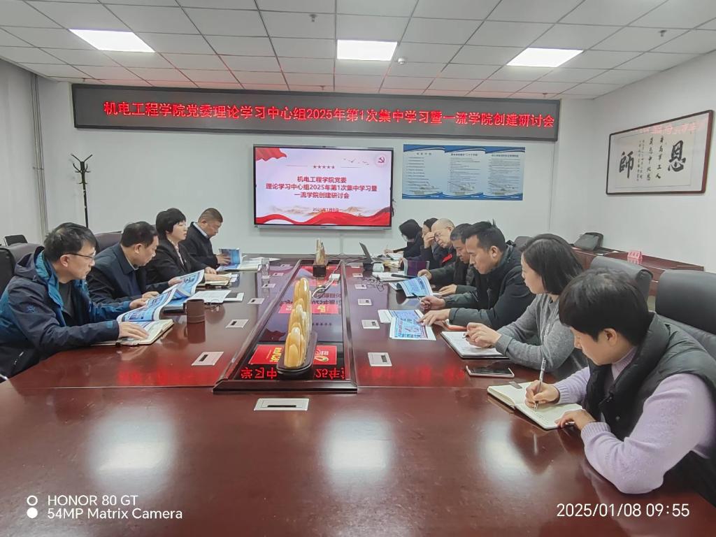 会上,班子成员集体学习了国家主席习近平发表二0二五年的新年贺词。随后,院党委书记赵永娟介绍了南京理工大学校长付梦印院士所做的主题为《牢记强国强军使命,建设世界一流大学》报告内容。主要学习了南京理工大学从坚持特色,培优一流兵器学科;系统推进,引领一流大学建设;辐射带动,高峰高原学科发展等三个方面70多年来发展历程。
