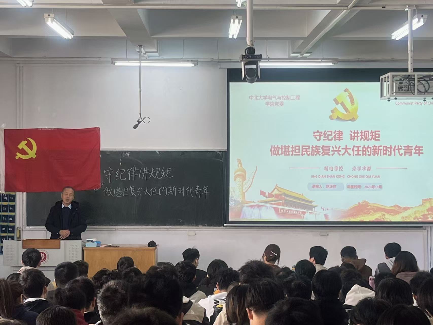 党委书记赵正杰讲授《守纪律讲规矩,做堪担民族复兴大任的新时代青年》。课堂上老师为同学们锚定新时代纪律要求,串联“守规矩”与“担大任”的内在逻辑,说明“底线思维”是“干事底气”的前提,引导学员把纪律意识转化为担当动力。教导学员们守纪律从不是成长的“束缚”,而是让青年在正确轨道上,更笃定地扛起民族复兴的重任。