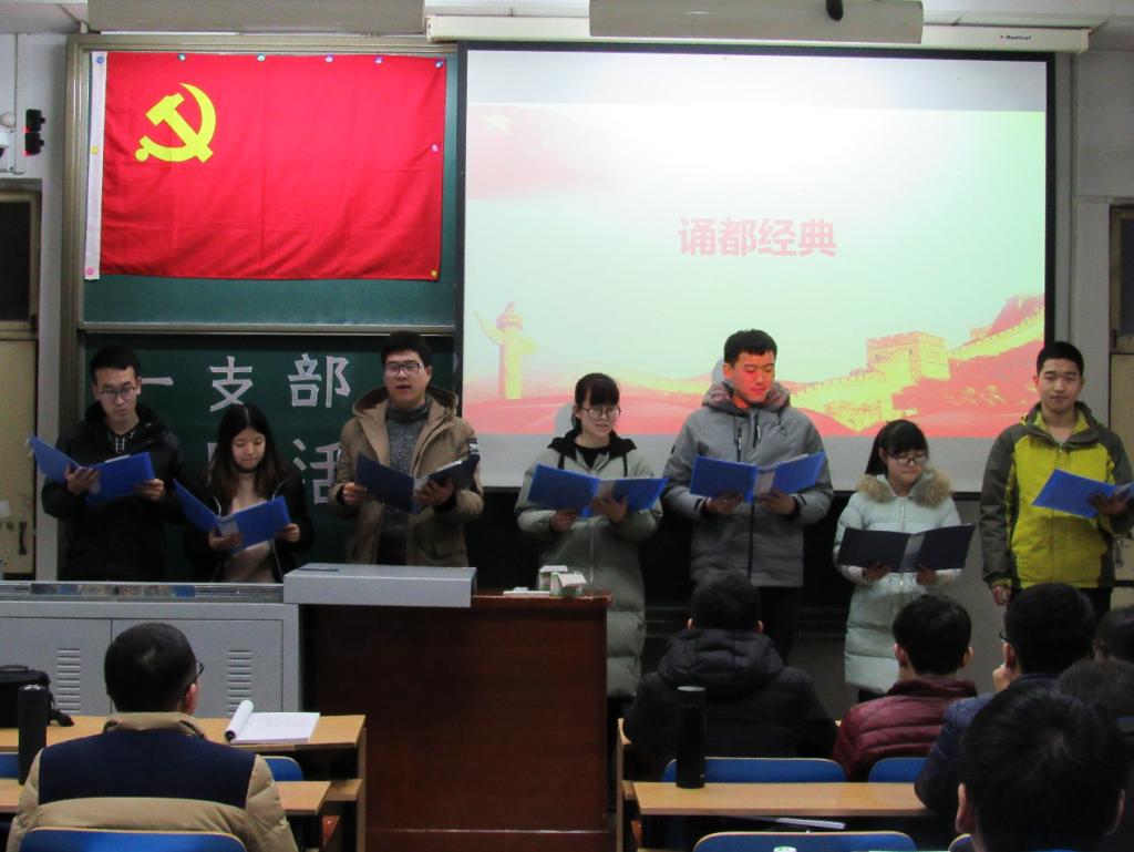 接下来李炬晨、董莹、靳亚男等同志为大家诵读经典:《诵红船》,使大家在激情澎湃的朗诵中体会了红船精神的伟大。朗诵过后进入知识竞答环节,这个环节由必答题、抢答题、论述题三部分组成。经过三轮的角逐后,第一小组脱颖而出,获得了冠军,由支部书记高幸华同志为他们颁奖并合影。