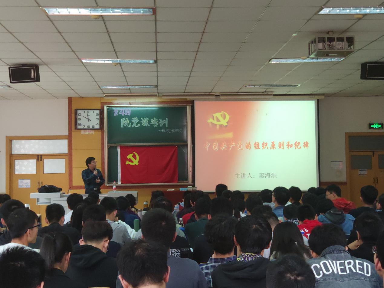 第二讲中,廖海洪书记就“党的组织原则与纪律”给同学们进行了讲解。他讲到,在长期的革命和建设中,我们党形成了严格的组织原则和纪律,对于每一个要求加入中国共产党的积极分子来说,了解党的组织原则和纪律,做自觉遵守党的组织原则和纪律的模范,是最基本的要求之一。