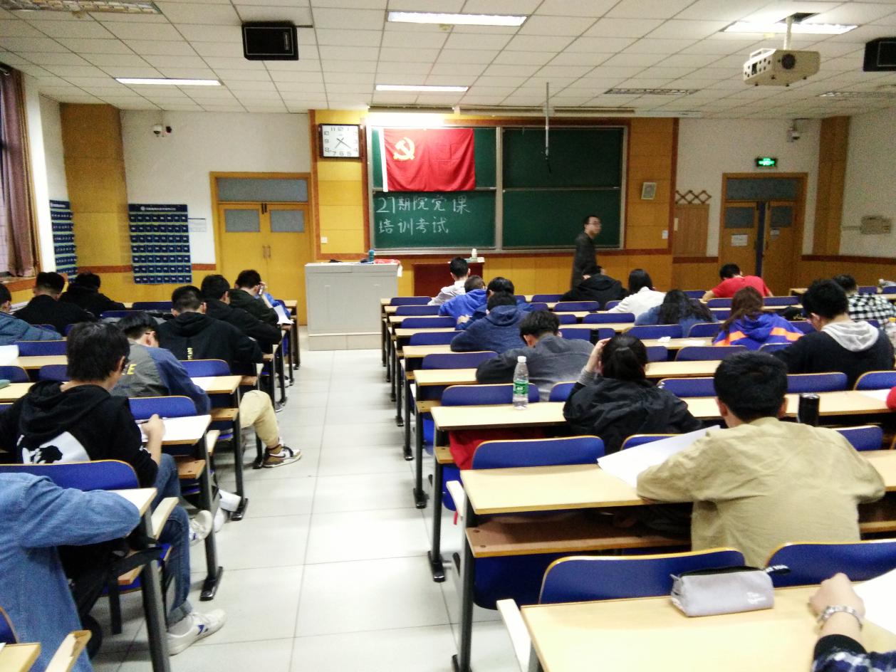 第27期院党课结业考试于2019年4月21日晚7时在9号楼302、303、501教室组织进行,参加考试的同学为本学期经班级推优选举确定的180名入党申请人。