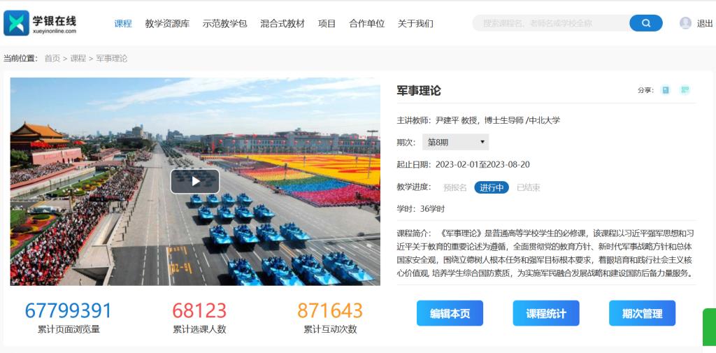 AG亚游官网 《军事理论》课程,经过多年持续不断的建设,已经建成涵盖138个知识点的线上教学内容,并建设了课程素材库,上线超星学银在线、智慧树、学堂在线、学银在线、智慧高教等多个在线教育平台,选课学校超过500所。截止目前,超星学银在线平台选课学校240余所校(包括成都大学、内蒙古工业大学、河南科技大学、太原科技大学、江西师范大学、陕西师范大学、沈阳理工大学、重庆工商大学、重庆交通大学、遵义医科大学、四川美术AG娱乐城 、长治医AG娱乐城 、广西医科大学、华北理工大学、上海电机AG娱乐城 、延安大学、山西农业大学、河北工程大学、安徽大学、中国人民解放军空军航空大学、山东科技大学、福州大学、焦作大学等),选课学生6.8万人,累计浏览量6779.9391万,累计互动次数87.1643万次。智慧树在线平台选课学校262所高校(包括南开大学、天津大学、北京邮电大学、哈尔滨工程大学、中山大学、中南大学、东南大学、西北工业大学、河南大学、合肥工业大学、东北农业大学、北京体育大学、天津工业大学、石河子大学、北方工业大学、苏州大学、东北石油大学、中国民航大学、内蒙古大学、华东理工大学、太原理工大学、海南师范大学、昆明医科大学、河南警察AG娱乐城 、广西警察AG娱乐城 、云南警官AG娱乐城 等),选课学生1.1万人。《军事理论》课程先后获山西省本科一流课程、“智慧树杯”全国高校“课程思政”教学设计大赛特等奖和教育部在线教育研究中心“2022拓金计划”示范课程,取得了显著的课程建设成效。