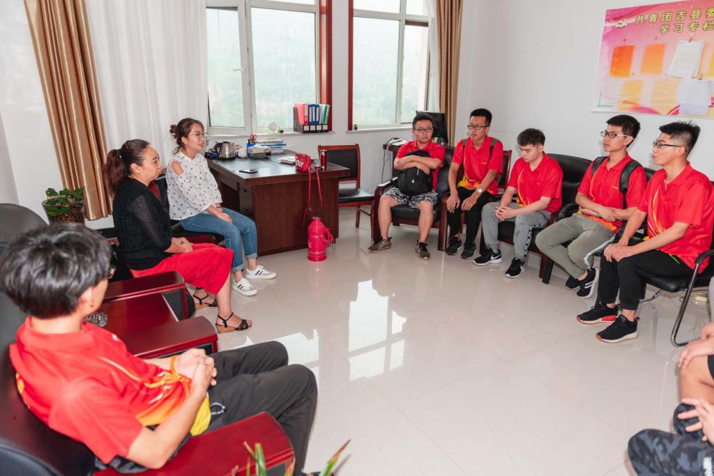 实践队在团委办公室找到了相关负责人,一行包括带队的李老师在内的十七个人员都围坐在一起,与负责人进行了亲密的洽谈。实践队的队长向负责人介绍了我们实践队的具体情况,表明了实践队的来意,并向负责人详细地介绍了我们中北大学暑期社会实践工作的开展流程。负责人表示,暑期社会实践对于大学生来说,是一项有益于学生学习和成长,值得各大高校努力开展的项目。依赖于负责人的帮助,实践队顺利翻开了暑期社会实践的篇章。最后,实践队与团委相关负责人在团委门前合影留念。