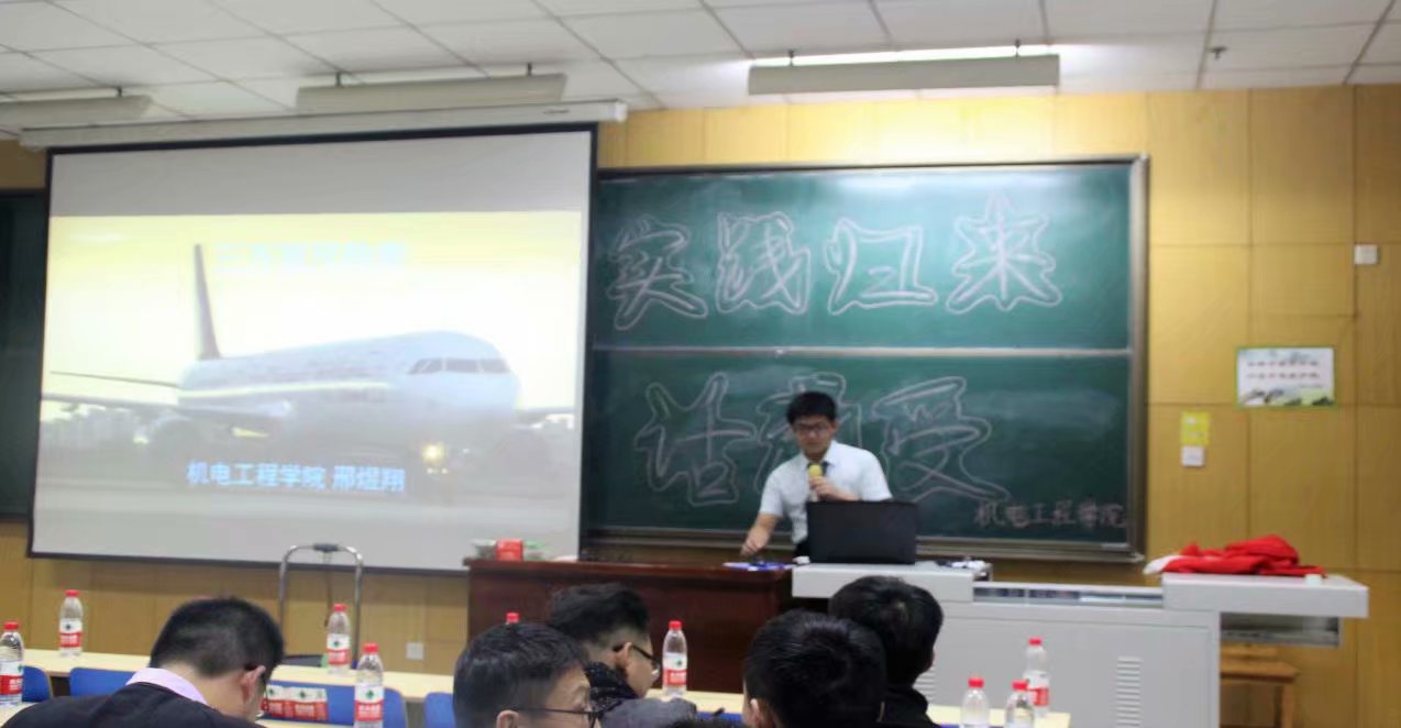 接下来是飞行器制造与工程专业邢煜翔同学。他为我们分享了他在首航,海航一线的所见所感。在暑期实践中,学长在这些地方了解了很多在书本上没有的知识,加深了自己对专业的理解,提高了自己的办事能力。