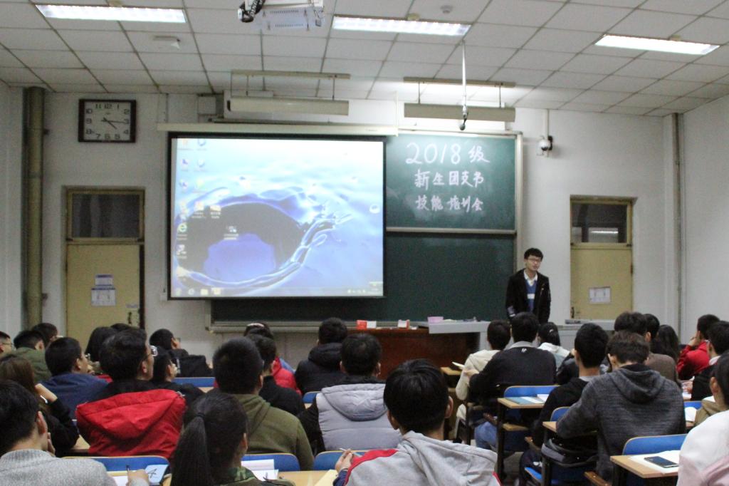 团委组织部于11号楼举办了2018级团支委技能培训会。首先是院团委组织部部长张俊彪同学讲话,在开场时,他请各班级团支委简要介绍了一下自己,然后简介了一下大会的流程。让同学们心中有个底。对于要听的技能分清主次,提高了同学们的学习效果。
