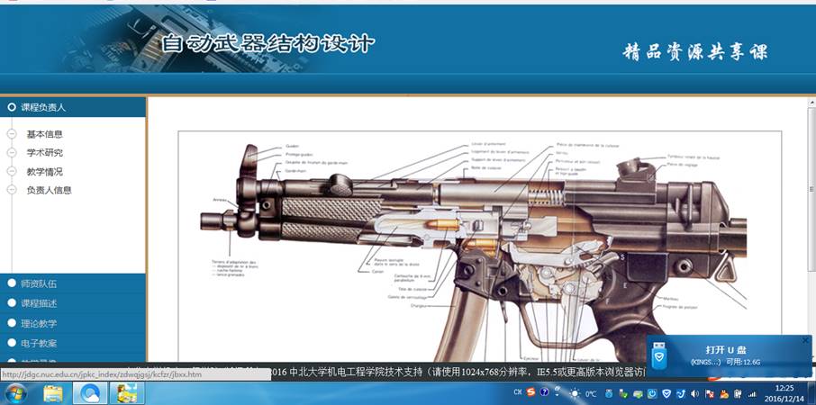 共享内容不仅包括了本门课程的课堂教学内容、实验内容、习题库等资源,另外还包括了课程组老师搜集整理的各类国内外自动机相关技术资料,课程资源不再是纯粹的文字讲解,还包括各种图片、仿真动画演示、视频等,以及其它相关课程的技术资料,典型武器的技术特点分析对比,借助大量的制造视频增加学生的感性认识,同时激发学生的学习兴趣,提高教学效果。